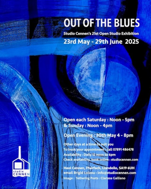 I'm delighted to be one the painters selected for the Out of The Blues exhibition at Studio Cennon, Llandeilo.